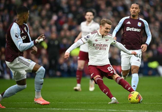 综合这些要素,阿森纳直到补时才输球已经算运气不错,要是沃特金斯、马伦们的射门再准一点,比分也恐怕不只是2比1。当然有人肯定会问:阿森纳的防线不如之前,那他们就不能用进攻弥补一下?进攻难道不就是最好的防守?道理没错,实际操作并不容易。维拉之所以会成为阿森纳最头疼的对手,甚至不是之一,就是因为他们知道如何遏制阿尔特塔的招数并实施针对性的打击。比如在中场,奥纳纳、卡马拉和蒂耶勒曼的三人组不仅非常有硬度,最后一位作为前腰的同时也是限制枪手“命门”的武器——此役苏维门迪全场仅传球48次,远低于中场搭档赖斯(59)和厄德高(64),这说明什么?说明衔接枪手前后场的中转站运转不畅,那整支球队的进攻犀利度必然也会下降。